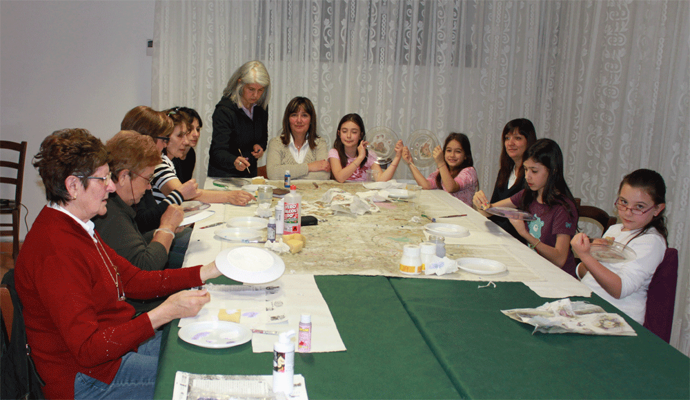 La maestra Rosangela Serra (nativa di Arbus, provincia del Medio Campidano) ha seguito le allieve nella realizzazione di lavori con tecniche per fare il docoupage pittorico e per fare le perline.