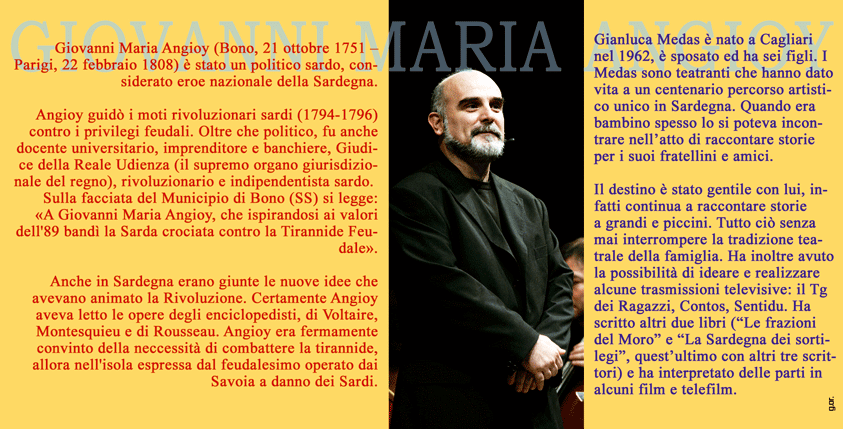 Si tratta della narrazione della Storia della Sardegna nell'epoca di Giovanni Maria Angioy, raccontata dall'attore teatrale sardo, Gianluca Medas. I Medas sono teatranti che hanno dato vita ad un centenario percorso