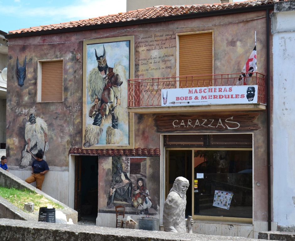 Nel corso della visita, scopriamo che la cittadina barbaricina è molto conosciuta in Sardegna anche per le maschere “il boe e il merdule” (il bue e l’uomo – contadino e pastore). Si tratta di maschere legate al carnevale che si affiancano alla terza maschera, ossia “sa fillonza”, temibile vecchia che fila il filo dell’esistenza (www.merdules.com).