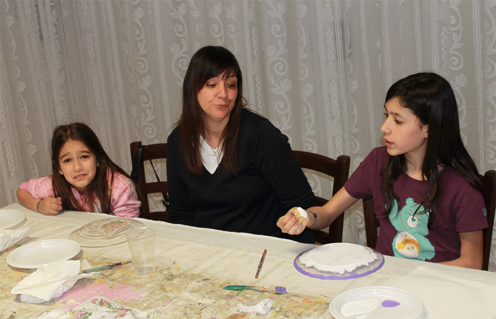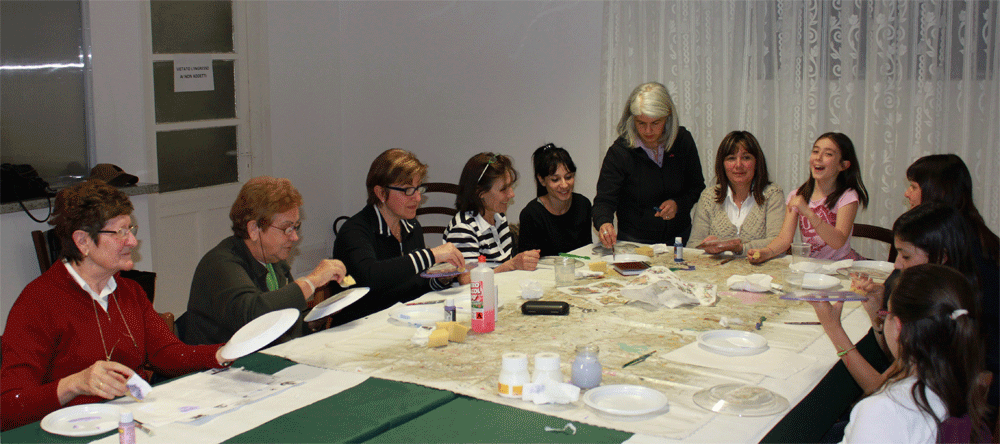Gli 11 partecipanti, 7 adulti e 4 bambine, guidati dai sapienti consigli di Rosangela, al termine della lezione sono tornati a casa con il loro primo lavoro completato.
